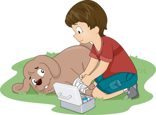 Lesões por produtos de limpeza que caem sobre o animal podem causar queimaduras. Nesse caso, lave o local com água corrente fria por cerca de 15 minutos. Se o produto cair no olho do animal, o dono deve lavar o local com água corrente e solução fisiológica. Produtos em pó devem ser protegidos dos olhos, focinho e boca do animal, e a maior parte possível do produto deve ser retirada pelo dono com um pano. Para agentes em pó, não molhe a boca do animal para evitar absorção do produto e encaminhe o pet ao veterinário.